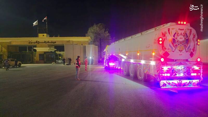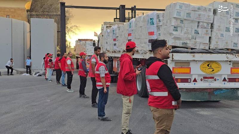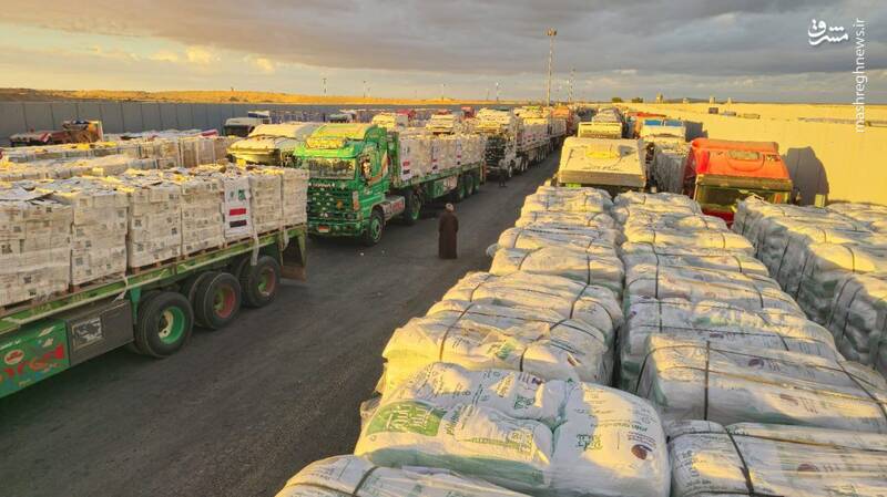 در گذرگاه مرزی رفح با مصر، تنها دروازه غزه به جهان، صدها کامیون پر از غذا، دارو، بنزین و گازوئیل، به عنوان بخشی از توافق آتش‌بس، در انتظار ورود به نوار غزه هستند.