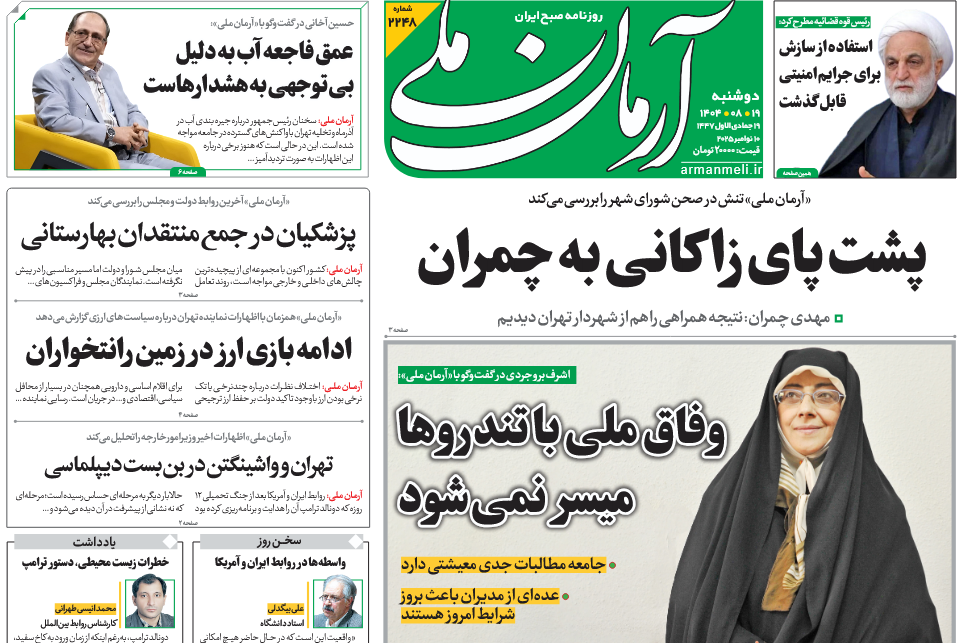 در آخرین مورد، رسانه های اصلاح طلب سعی کرده‌اند از بحث کارشناسی بین دکتر زاکانی و مهندس چمران، شهردار و رئیس شورای شهر تهران در جلسه دیروز شورا نهایت سوءاستفاده را ببرند و به همین دلیل تیترهای اصلی شماره های امروز خود را به عباراتی نظیر «چمران زیر تیغ زاکانی»، «پشت پای زاکانی به چمران» و… اختصاص دادند.