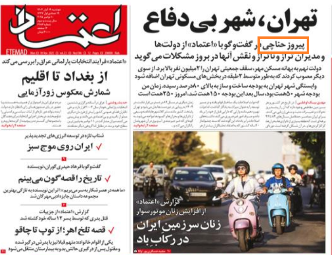 در ادامه همین رفتارهای انتخاباتی، روزنامه اعتماد تیتر اصلی شماره امروز خود را هم به گفتگو با حناچی شهردار اصلاح طلب تهران در شورای پنجم اختصاص داده است. شاهکار مدیریتی اصلاح طلبان در شورای پنجم انتخاب سه شهردار از جمله نجفی بود. در ادامه هم که حناچی مدیریت تهران را به عهده گرفت، «تهران راکد» بهترین توصیف از آن حدود 28 ماه است. این در حالی است که در چهار سال و سه ماه گذشته همه پروژه های پایتخت مانند «میدان فتح» فعال شده و نوبت به نوبت در خدمت مردم تهران قرار گرفته و می‌گیرند.