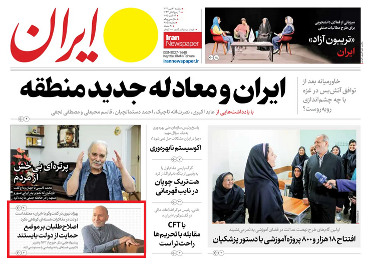 روزنامه دولت(ایران) در اقدامی عجیب و قابل تامل در گفتگو با بهزاد نبوی رئیس سابق جبهه اصلاحات، نظر وی را پیرامون پیشنهاد استعفای به رئیس جمهور بعد از فعال شدن اسنپ بک پرسیده است که نبوی در پاسخ چنین گفته است: به نظر من استعفا نه تنها مشکل کشور را حل نمیکند بلکه شرایط آن را پیچیدهتر هم میکند. اگر قرار باشد دولتی شبیه دولت رقیب انتخاباتی پزشکیان بر سرکار بیاید، اوضاع حتماً بدتر خواهد شد.